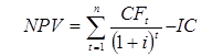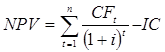 Метод чистой текущей стоимости (Net Present Value – NPV) основан на сопоставлении величины исходной инвестиции (IС) с общей суммой дисконтированных чистых денежных поступлений за период эксплуатации инвестиционного проекта. Чистая текущая стоимость рассчитывается по формуле: