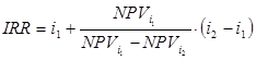 Расчет IRR выполняем методом последовательных приближений, окончательно IRR определяем, используя формулу интерполирования: