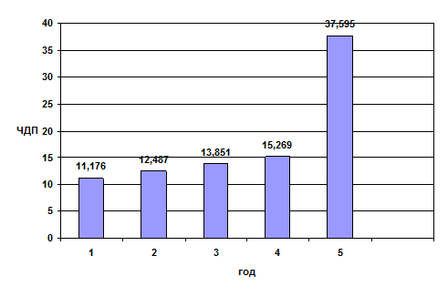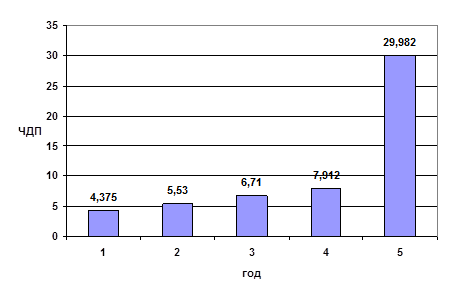 | Чистый денежный поток | 4.375 | 5.53 | 6.71 | 7.912 | 29.982 |