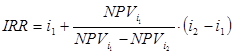 i2 – значение ставки дисконта, при которой NPV отрицателен.