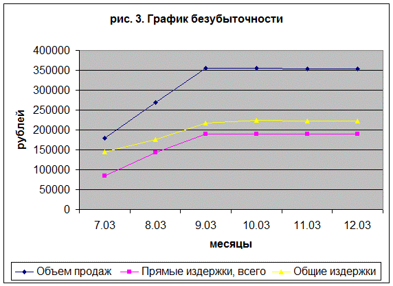Из графика видно, что в октябре намечается снижение прибыли – это объясняется возрастанием постоянных расходов (повышение заработной платы).