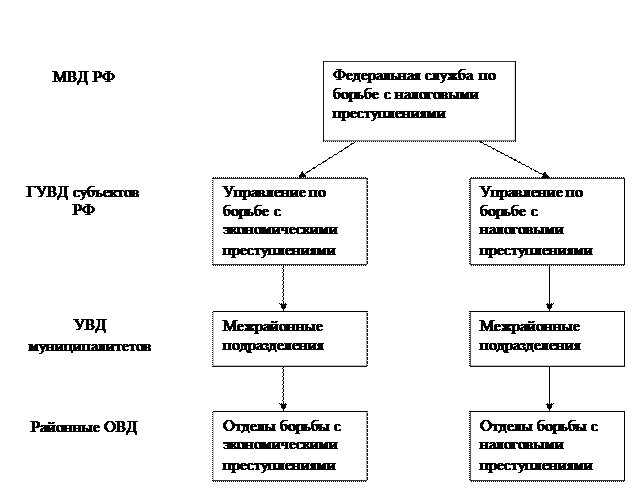 Вместо органов ликвидированной в 2002 г. налоговой полиции, переданной в состав Министерства внутренних дел РФ, в настоящее время выступают управления по борьбе с экономическими и налоговыми преступлениями, имеющими сеть по всем субъектам РФ.