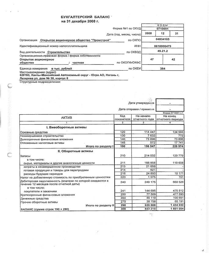 Расходы ОАО «Промстрой» за 2008 год.