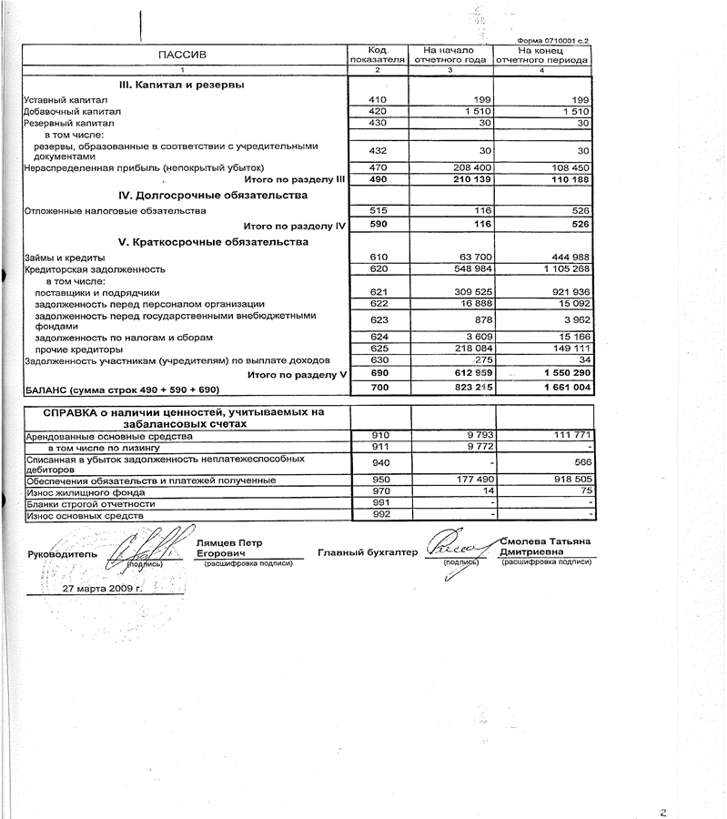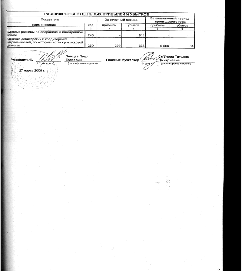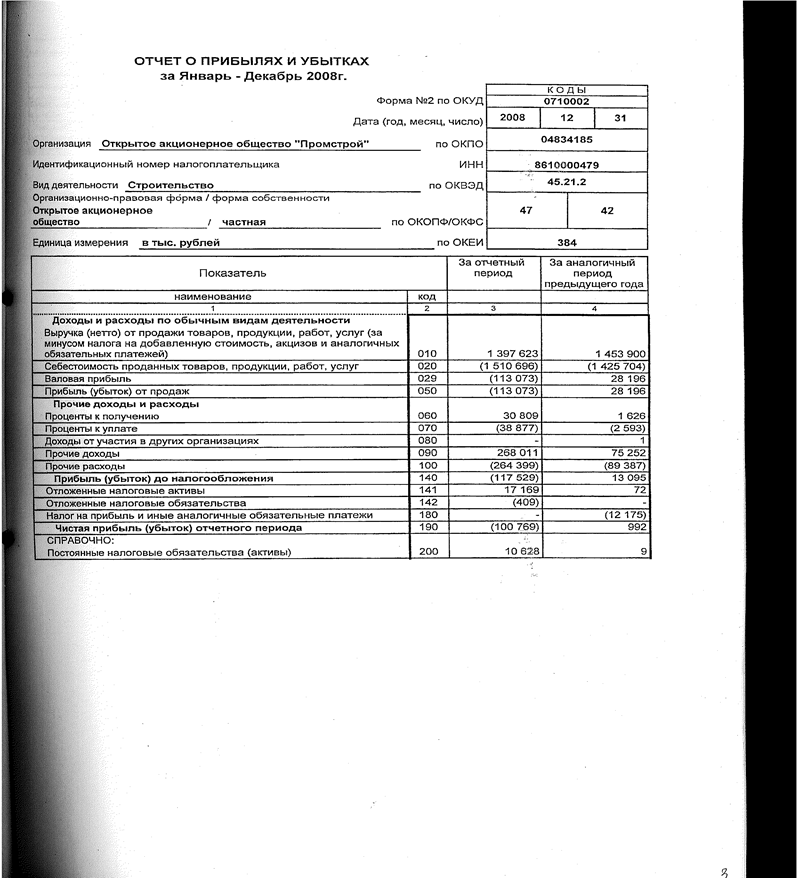 После установления отложенных налоговых активов и обязательств рассчитывается текущий налог на прибыль и чистая прибыль отчетного периода. В итоге в конце 2008 года мы получили убыток, который составил 100769000 руб.