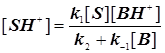 Вначале можно рассмотреть несложный катализ в водном растворе. Реакции этого типа обычно протекают в две стадии. На первой происходит передача протона субстрату S. На второй происходит отделение протона от протонированного субстрата SH+. Присоединяющийся протон может происходить из катиона гидроксония H3O + или других кислых веществ, присутствующих в растворе; эти вещества обозначаются как BH+