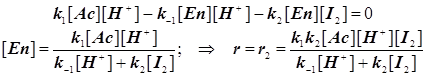 Если скорость обратной реакции мала, то получается нулевой порядок по йоду: ![]()