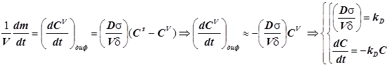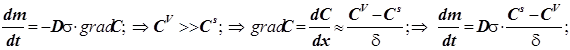 Уравнение массопереноса под влиянием диффузии имеет первый порядок по концентрации. Формально оно не отличается от обычного кинетического уравнения. Диффузия — процесс активационный с относительно небольшой энергией активации — всего около 4-9 кДж/моль.