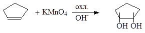 В промышленности этиленгликоль получают исключительно гидратацией окиси этилена. Другие 1,2-диолы (гликоли) могут быть получены окислением алкенов перманганатом калия или тетрокисдом осмия: