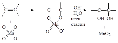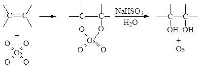 Обе гидроксильные группы присоединяются к двойной связи с одной стороны (цис-присоединение). Обе эти реакции представляют собой син гидроксилирование.