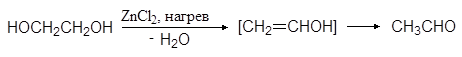 При нагревании с хлоридом цинка дегидратация происходит внутримолекулярно и приводит к образованию ацетальдегида:
