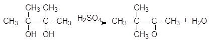 Дегидратация пинакона в присутствии кислоты сопровождается пинаколиновой перегруппировкой,