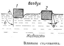 Флотация основана на различной смачиваемости минералов водой. Мерой смачиваемости материалов служит величина краевого угла смачивания, образующегося вдоль линейной границы раздела твёрдое тело — жидкость — воздух (Рис 1.1 ).