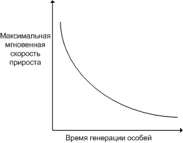 максимальная мгновенная скорость прироста популяции обратно пропорциональна продолжительности жизни организмов и отражает их способность увеличивать свою численность.