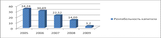 · высокая рентабельность операций. По соотношению рентабельности капитала и его стоимости рынок России сопоставим с наиболее привлекательными развитыми рынками и превосходит практически все крупные быстрорастущие рынки мира. Ожидается, что, несмотря на некоторое сокращение маржи по основным продуктам, российский банковский рынок и к 2014 году останется привлекательным по этому показателю изменялась. Здесь же можно обратить внимание на рентабельность активов (рис. 4) и рентабельность капитала (рис. 5). Тенденция за последние 5 лет наблюдается отрицательная, т.е. данные показатели явно идут вниз и это напрямую связано с сегодняшним кризисом, который нанес первый ощутимый удар осенью 2008 года;