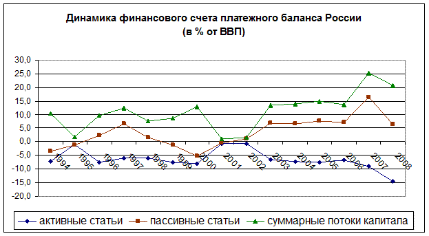 2. В период рыночной трансформации произошел рост степени открытости российской экономики по отношению к трансграничным потокам капитала (см. график).