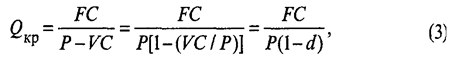 где d— относительный уровень удельных переменных расходов в цене продукта (d = VC/Р);