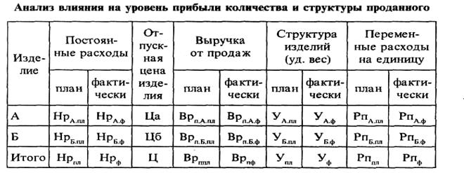 Точка критического объема продаж подлежит постоянному контролю для оценки степени прибыльности предприятия. Количество и структура проданной продукции определяют размер прибыли. С этой целью необходимо проанализировать структуру продаж, а затем влияние ее изменений на прибыль. Влияние на уровень прибыли количества и структуры проданного анализируется следующим образом