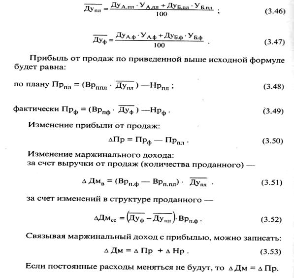 Для дальнейших расчетов влияния структурных сдвигов продукции на прибыль используют следующую формулу: