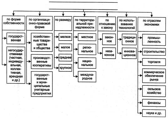 Существует множество классификаций предпринимательской деятельности по различным характерным признакам. В теории и практике самой распространенной можно назвать следующую классификацию (рисунок1):