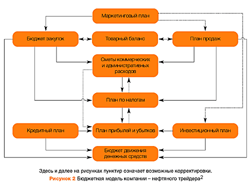 Бюджетная модель во многом зависит от вида деятельности компании. И если финансовая часть мастер-бюджета одинакова для всех предприятий, то состав операционных бюджетов и существующие между ними взаимосвязи будут серьезно различаться в зависимости от того, для какого предприятия — производственного, торгового и т. д. — построена бюджетная модель