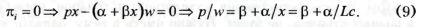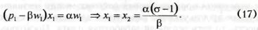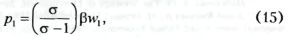 где pi определяется функцией спроса (5), aw — цена труда. Стандартное решение этой задачи получается из равенства предельного дохода и предельных издержек, и оптимальная цена, устанавливаемая монополистом, зависит от уровня предельных издержек и эластичности спроса на производимый им товар: