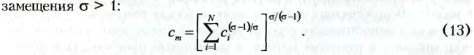 Агрегированный промышленный товар, на который в силу (12) всегда тратится доля р дохода, в свою очередь, представляет собой такую композицию большого числа N разновидностей, что функция спроса на разновидности характеризуется постоянной эластичностью