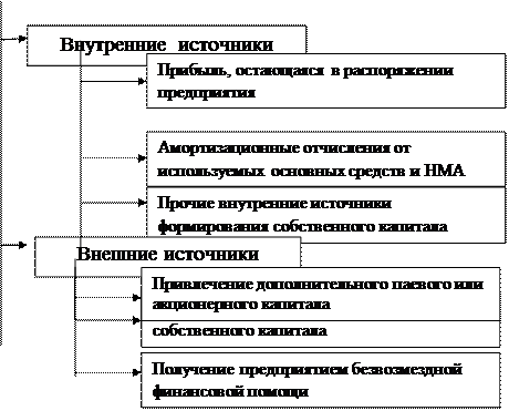 В составе внутренних источников формирования собственного основное место принадлежит прибыли, остающейся в распоряжении предприятия, — она формирует преимущественную часть его собственных финансовых ресурсов, обеспечивает прирост собственного капитала, а соответственно и рост рыночной стоимости предприятия. Определенную роль в составе внутренних источников играют также амортизационные отчисления, особенно на предприятиях с высокой стоимостью используемых собственных основных средств и нематериальных активов; однако сумму собственного капитала предприятия они не увеличивают, а лишь являются средством его реинвестирования. Прочие внутренние источники не играют заметной роли в формировании собственных финансовых ресурсов предприятия. В составе внешних источников формирования собственного капитала основное место принадлежит привлечению предприятием дополнительного паевого (путем дополнительных взносов средств в уставный фонд) или акционерного (путем дополнительной эмиссии и реализации акций) капитала. Для отдельных предприятий одним из внешних источников формирования собственных финансовых ресурсов может являться предоставляемая им безвозмездная финансовая помощь (как правило, такая помощь оказывается лишь отдельным государственным предприятиям различного уровня). В число прочих внешних источников входят бесплатно передаваемые предприятию материальные и нематериальные активы, включаемые в состав его баланса.