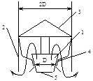 Пыль попадая в трубопровод 1 по касательной к корпусу приобретает вращательное движение по спирали, опускается вниз по конической части корпуса 3 собирается в шлаковые сборники 4. Очищенная воздушная смесь под действием поступающего воздуха вытесняется в выходной трубопровод 2.
