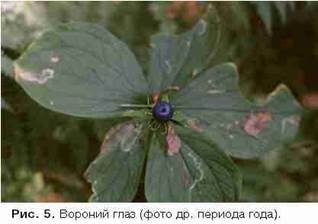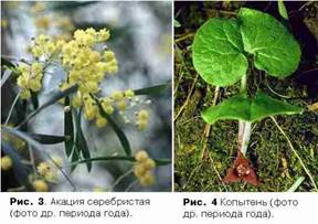 меру, видов, которые обычно не достигают высоты верхнего яруса (рябина [рис. 2]). Третий ярус — кустарники (акация [рис. 3]), они образуют подлесок, четвертый — травы (копытень [рис. 4], осока волосистая, вороний глаз [рис. 5], ясменник душистый). Мхи на поверхности почвы могут формировать еще один ярус растительности.