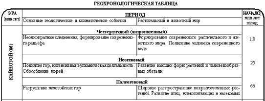 Возраст горных пород вычисляется по содержанию продуктов радиоактивного распада в минералах. Для геохронологии, исчисляемой в миллионах лет, чаще всего используют уран-свинцовый, рубидий-стронциевый, самарий-неодимовый и калий-аргоновый методы, а для последних 60 тыс. лет – радиоуглеродный метод, основанный на излучении радиоактивного 14С. Абсолютная геохронология предложена в начале XX в. П.Кюри и Э.Резерфордом. В земной коре хранятся следы прошлого нашей планеты. Кора расчленена по возрасту на слои, толщи, горизонты, ярусы, отделы, системы, каждая из которых имеет радиоактивные часы, фиксирующие возраст. Длительная история Земли подразделена на эпохи и периоды (см. геохронологическую таблицу).