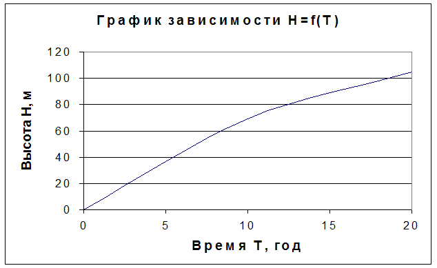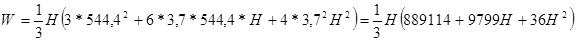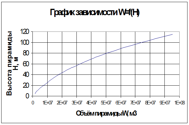 Задаваясь высотой Н, вычисляем объем пирамиды. Расчет сведен в таблицу 1. По результатам вычислений строим график зависимостей W=f(Н).