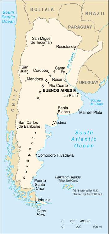 Аргентина расположена в юго-восточной части материка Южная Америка. Это большая страна – восьмая по площади в мире и вторая в Южной Америке. Она граничит с Чили на западе, Уругваем, Парагваем, Бразилией, Боливией на севере и северо-востоке. В состав территории, кроме материковой части входит восточная часть острова Огненная Земля и другие небольшие острова. Кроме того, Мальвинские (Фолклендские) острова, находящиеся в Атлантическом океане являются спорной территорией между Аргентиной и Великобританией. Страну можно разделить на четыре основные физиографические провинции: Анды на западе (с безводными тектоническими бассейнами, виноградниками у подножий гор, ледниками и Районом Озер), плодородные низменности на севере (с субтропическими лесами), засушливые просторы в центре и Патагония (с пастушескими степями и районом ледников).