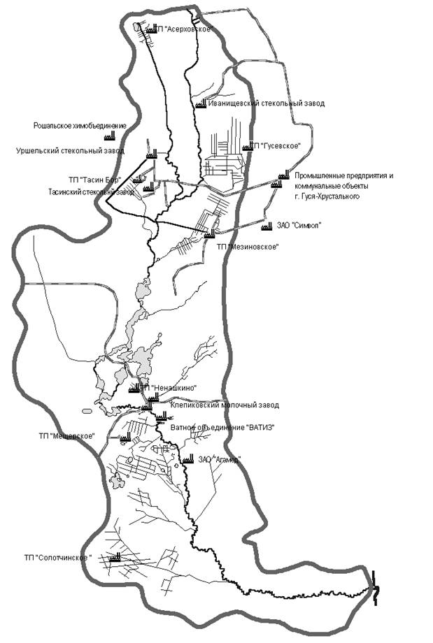 Таким образом, в тексте “Положения...” содержится обращение к идее перепрофилирования и реконструкции предприятий, ничем, впрочем, не подкрепленное: сам документ не был обсужден с руководителями предприятий, разработчики считают необходимым введение жестких ограничений и говорят о возрождении самобытных промыслов. С точки зрения развития рыночной экономики (выпуск продукции определяется, прежде всего, потребителем), обеспечения рабочих мест для населения национального парка (около 15 тысяч человек), с учетом сложившейся хозяйственной структуры (в границах парка и в буферной зоне расположено более десяти промышленных площадок стекольных, торфяных, мебельных и др. предприятий – см. схематическое изображение водосбора реки Пры, являющейся ключевым водным объектом национальных парков “Мещера” и “Мещерский”, на рис.1) обсуждаемый документ не может считаться обоснованным.