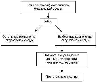 Кантер (Canter, L.W., 1996) рекомендует применение систематического процесса для отбора природных условий и компонентов окружающей среды, подлежащих описанию в документации по ЭО (ЗВОС), схематически изображенного на рис. 5.