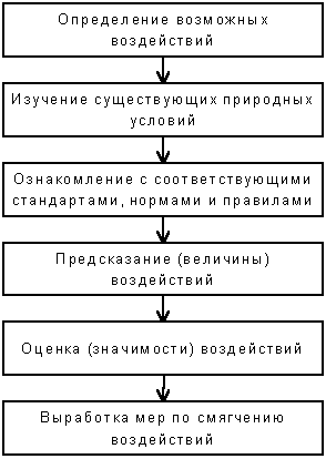 Кантер (Canter, L.W., 1996) рекомендует процедуру из шести шагов предсказания воздействий, оценки значимости и разработки мер по уменьшению воздействий по первым семи из этих компонент, приведенную на рис. 6.