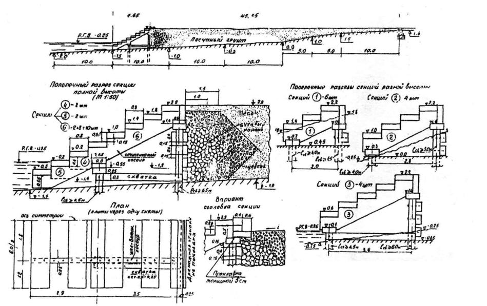 Примечания. 1. Мысообразные площадки окаймляются откосно-ступенчатой проницаемой конструкцией на свайном основании (см. рисунок 8.2).