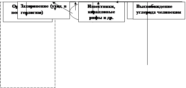 Круговорот углерода. Углерод в биосфере часто представлен наиболее подвижной формой — углекислым газом. Источником первичной углекислоты биосферы является вулканическая деятельность, связанная с вековой дегазацией мантии и нижних горизонтов земной коры.