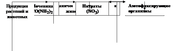 Круговорот азота. . При гниении органических веществ значительная часть содержащегося в них азота превращается в аммиак, который под влиянием живущих в почве трифицирующих бактерий окисляется затем в азотную кислоту. Последняя, вступая в реакцию с находящимися в почве карбонатами, например с карбонатом кальция СаСОз, образует нитраты: