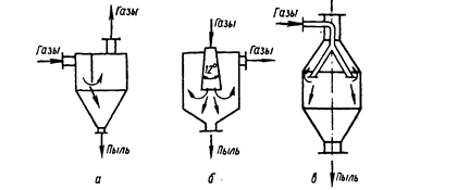 -циклоны, батарейные циклоны, вращающиеся пылеуловители, принцип работы которых основан на действии центробежной силы.