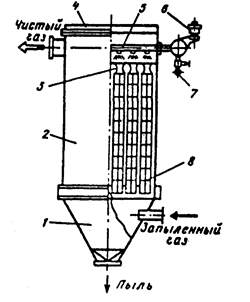Для очистки запыленных газов все большее распространение получает на последних ступенях сухая очистка рукавными фильтрами. Степень очистки газов в них при соблюдении правил технической эксплуатации достигает 99,9%.