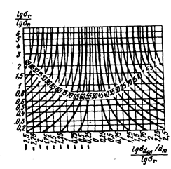 Номограмма построена для значений dm и d50 пыли стандартной плотности rг = 1000 кг/м3. Пересчет значений dm и d50 от реальной плотности rг к стандартной производят по формуле: