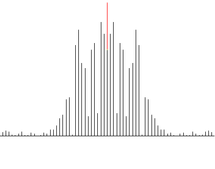 равно элементорной частоте. Симметрия спектра относительно вертикальной оси говорит о вещественности исходной функции.