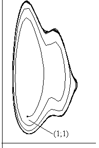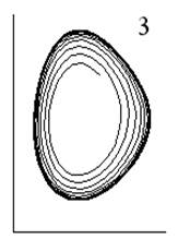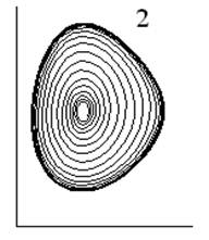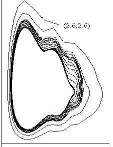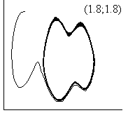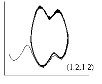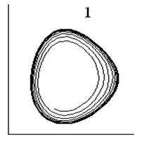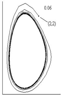 Рис.7: Изменение вида цикла при изменении нач. условий (в скобках) и при d=0.01.