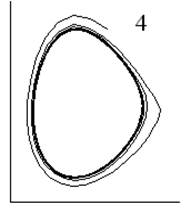 цикл абсолютно устойчив. Значения параметров те же, что и дли рис.3. Для 1