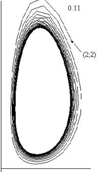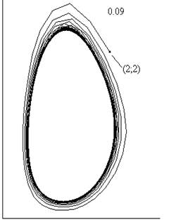 Рис.4: «Внутренность» предельного цикла– разные траектории наматываются на него-