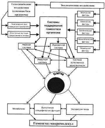Рис. 2. Экологические воздействия и системы поддержания гомеостаза организма