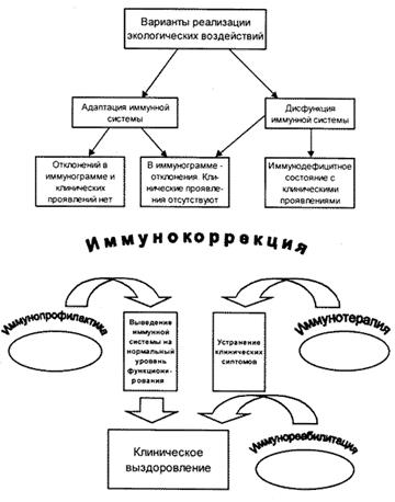Рис. 3. Возможные варианты экогенных отклонений в состоянии иммунной системы и подходы к их коррекции