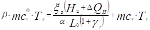 Примем коэффициент использования теплоты xz = 0,8, тогда количество теплоты, передаваемой на участке lz при сгорании топлива в 1 кг.: Q = xz×(Hu-DQH), где Hu — низшая теплотворная способность топлива равная 42700 (Кдж/кг)., DQH =119950×(1-a)× L0 — количество теплоты, потерянное в следствии химической неполноты сгорания :