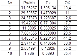 Рх / Мр = Рв (Vв /Vх)n2, отсюда Рх / Мр = (рв/Мр)(ОВ/ОХ)n2, где ОВ= 85,4; n2 =1.25