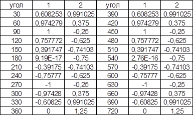Vп | 12,89 | 20,65 | 21,2 | 16,06 | 8,31 | -8,31 | -16,06 | -21,2 | -20,65 | -12,89 | ||